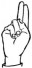 На ћирилици написано ПЕРИША РАЦИЋ састоји се из 11 слова [?]. Исписано ћириличном једноручном азбуком за глувонеме: